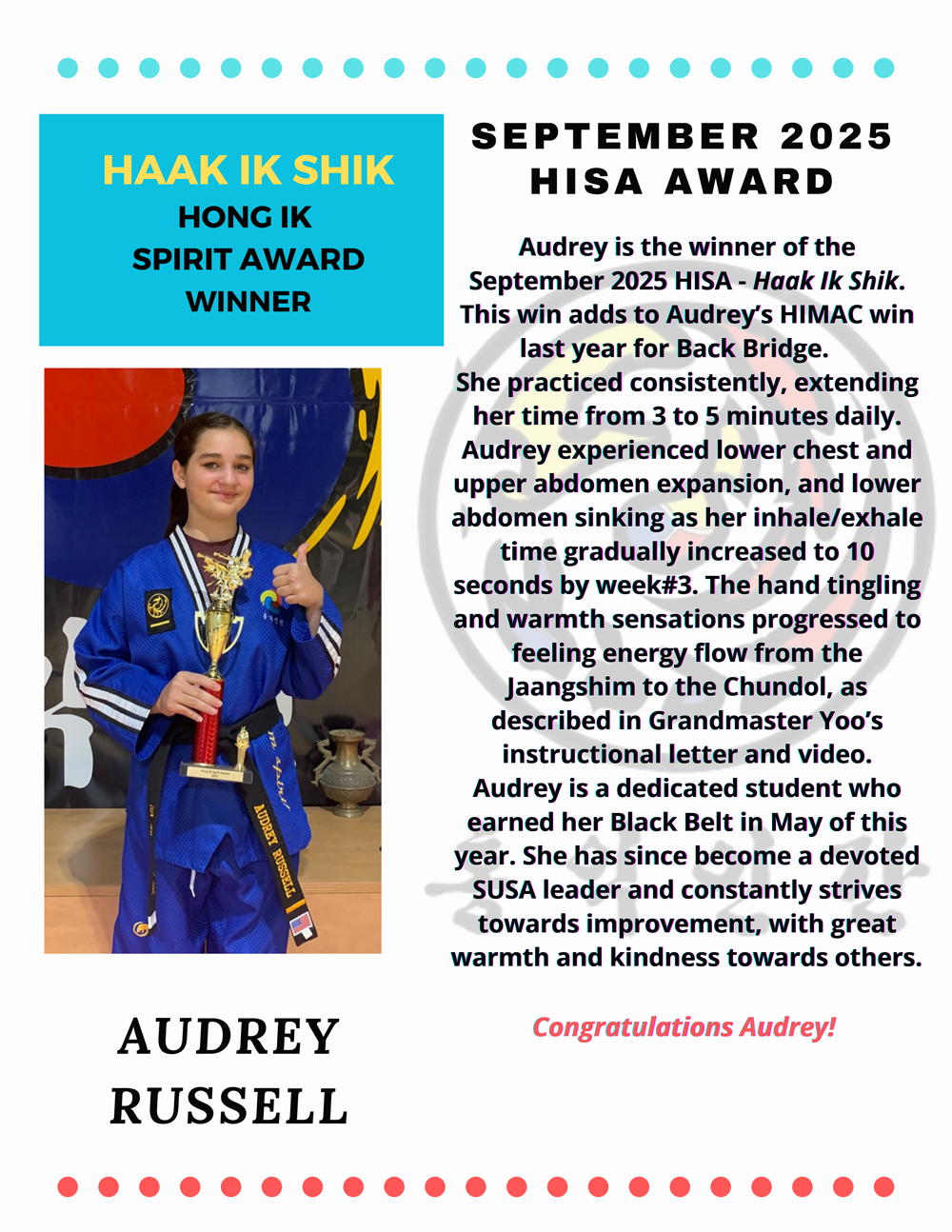 Hong Ik Martial Arts Spirit Award: September 2025 Winner of Tarrytown Location October 14, 2025 by hongikmartialarts Blog