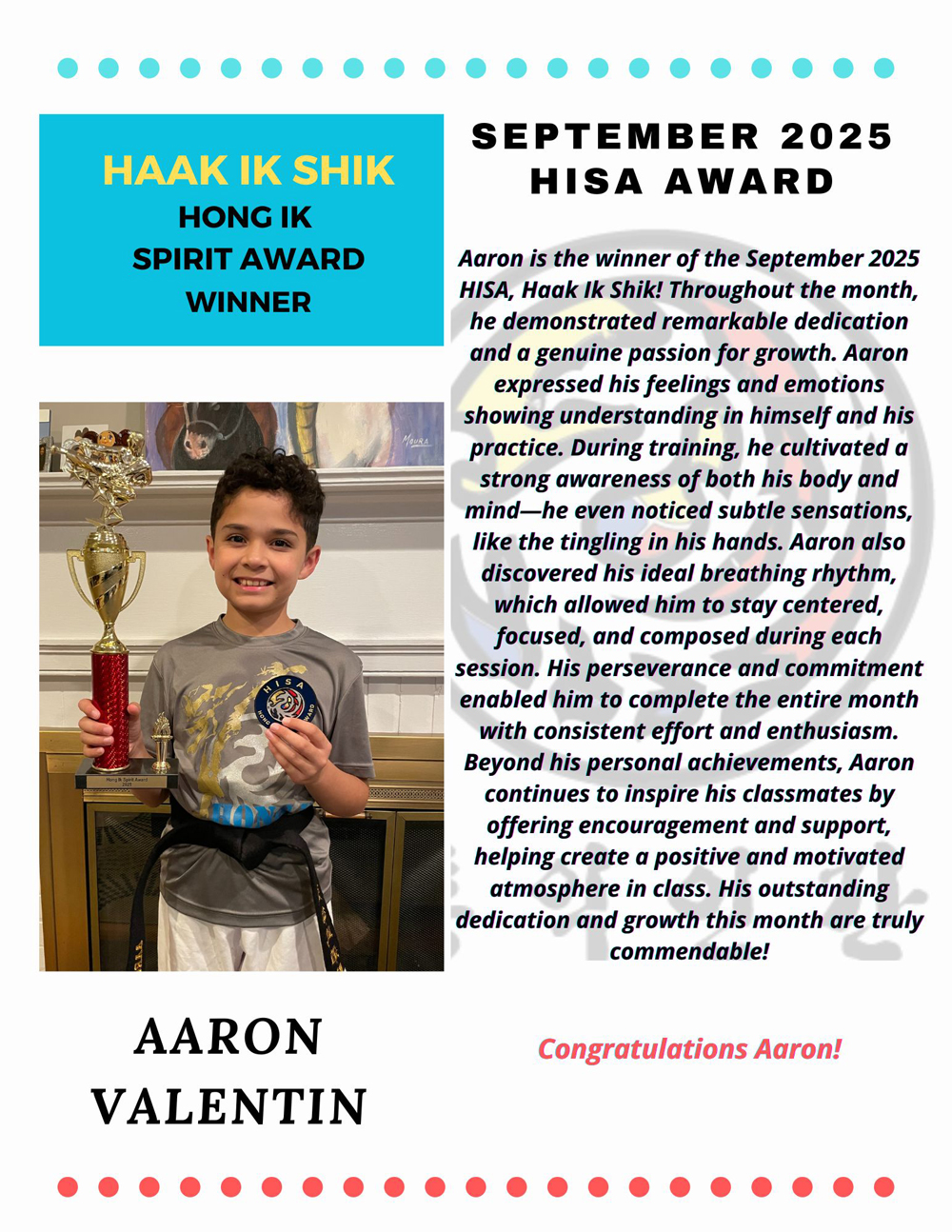 Ik Martial Arts Spirit Award: September 2025 Winner of Bronxville Location October 24, 2025 by hongikmartialarts Blog