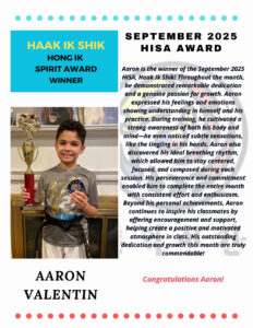 Hong Ik Martial Arts > Blog  > Hong Ik Martial Arts Spirit Award: September 2025 Winner of Bronxville Location > Bronxville-HISA-Winner
